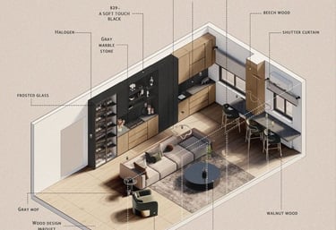 Detailed 3D renders & Guidance in material selection of budget friendly products for a dream home